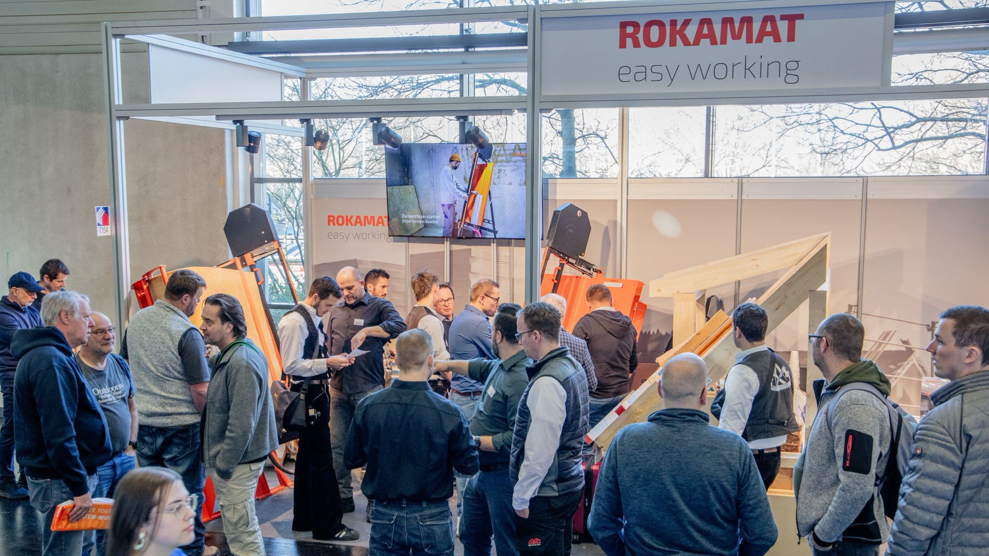 Unser Rokamat-Stand auf der DACH+HOLZ in Köln war durchgehend gut besucht: Zimmerer, Dachdecker und Händler nutzten die Gelegenheit, unsere Neuheiten live zu erleben. Im Mittelpunkt standen der Akku-Dämmstoffschneider Tigris 1250 CX und der Sanierungsschleifer Gex — beide Geräte lösten große Begeisterung aus.
