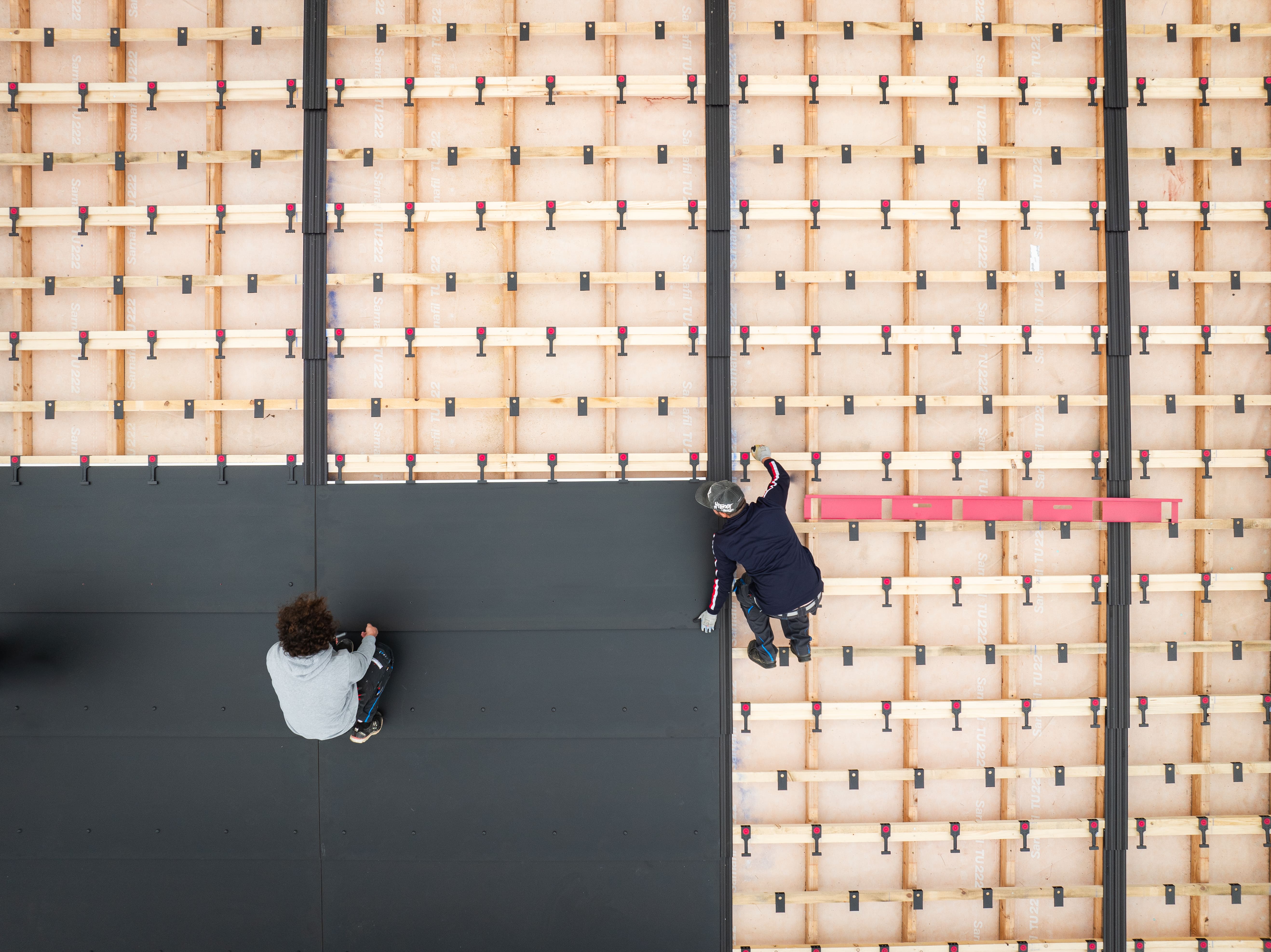 Mit Tectolit Lap lassen sich rechteckige Platten in 2500 × 930 mm und 1520 × 930 mm auf Dächern mit einer Neigung ab 15° verlegen. Standardmäßig ist das System in den Farblinien Swisspearl Natura oder Swisspearl Reflex erhältlich; für farbgleich gestaltete Dach- und Fassadenflächen fertigt Swisspearl Dachplatten auch in Sonderfarben. Durch die Verlegung mit minimaler Überlappung spart Tectolit Lap im Vergleich zur traditionellen Dachschiefer-Doppeldeckung rund ein Drittel Material – das reduziert Gewicht, kann den ökologischen Fußabdruck verringern und bringt Verarbeitern spürbare Effizienz.