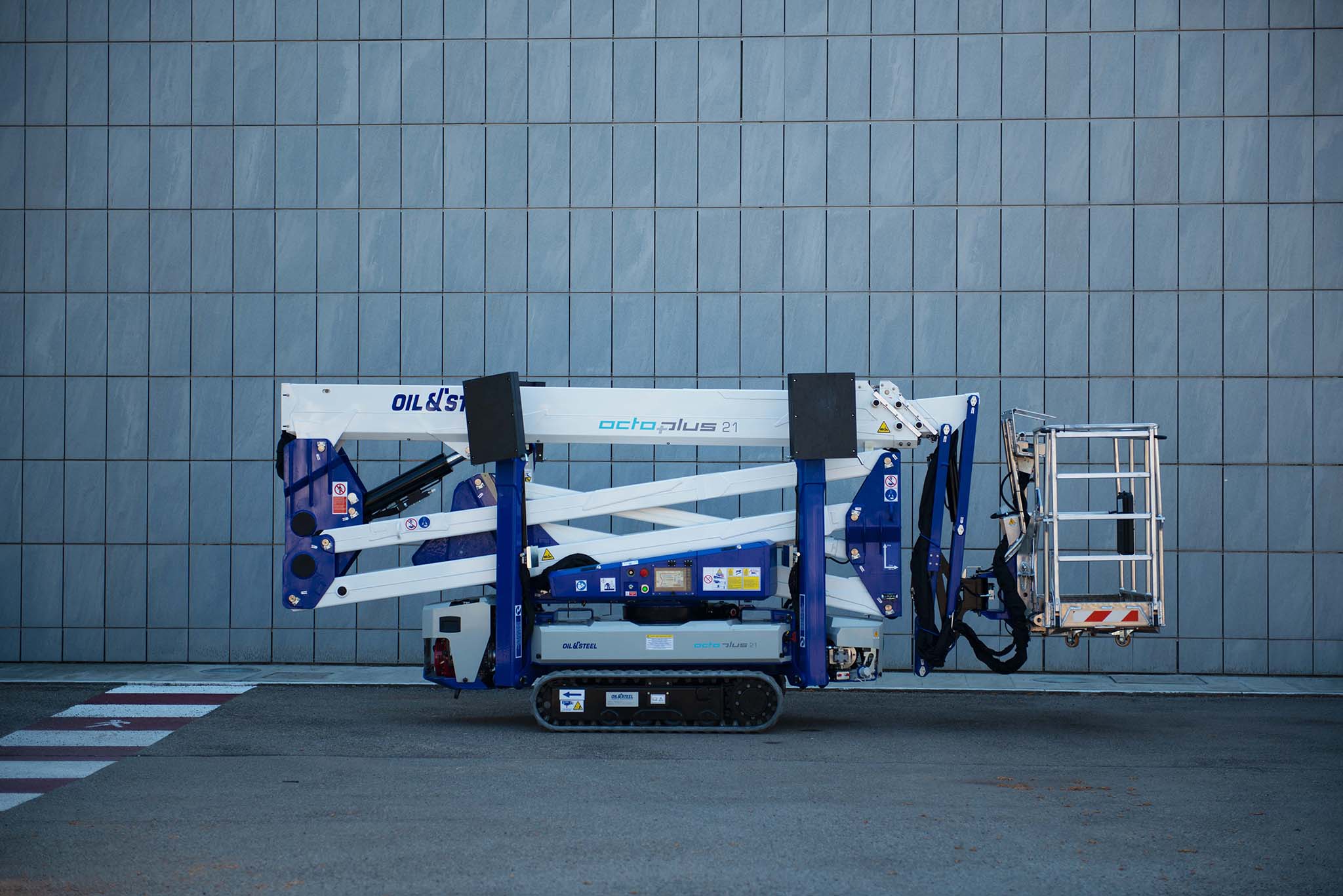 Die Oil&Steel Octoplus 21 Raupenarbeitsbühne setzt neue Maßstäbe im 21m Segment. Durch Ihre kompakte Bauweise und feinfühlige Steuerung lässt Sie sich auch in schwer zugängliche Baustellen manövrieren. Die geringe Abstützbreite in Verbindung mit der hohen Reichweite, machen die Octoplus zu einem echten Allrounder im Innen- sowie Außenbereich.