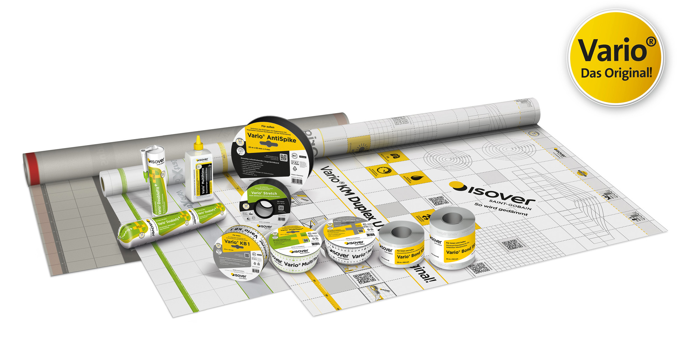 Das ISOVER Vario® Luftdichtheits- und Feuchteschutzsystem schützt gedämmte Bauteile zuverlässig vor Feuchteschäden und sorgt für maximale bauphysikalische Sicherheit – auch in der Modernisierung. Mit den optimal abgestimmten Systemkomponenten lässt sich die luftdichte Ebene schnell, sicher und dauerhaft herstellen. In Kombination mit der ISOVER Mineralwolle schützt Vario® die Konstruktion ein Gebäudeleben lang.
