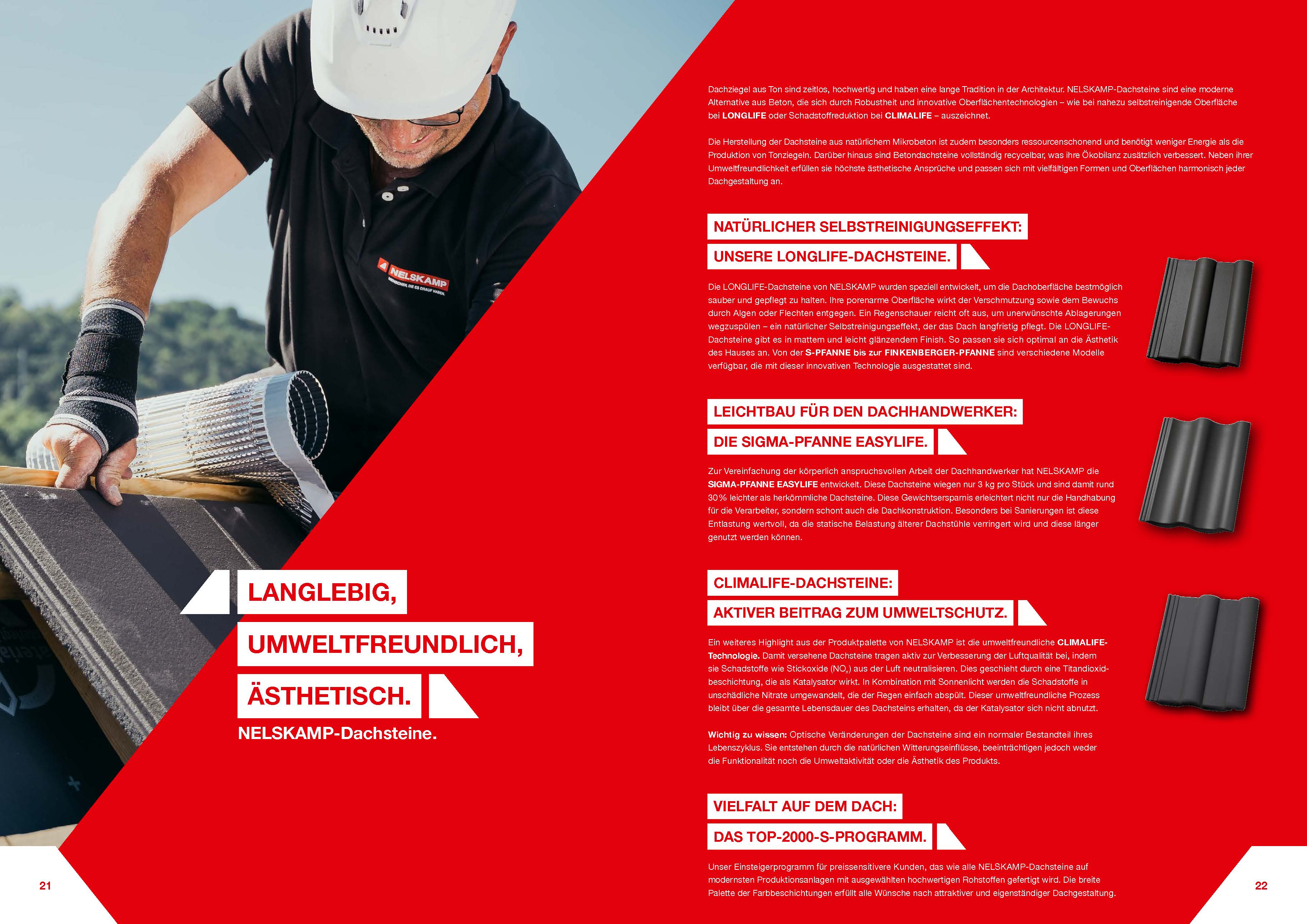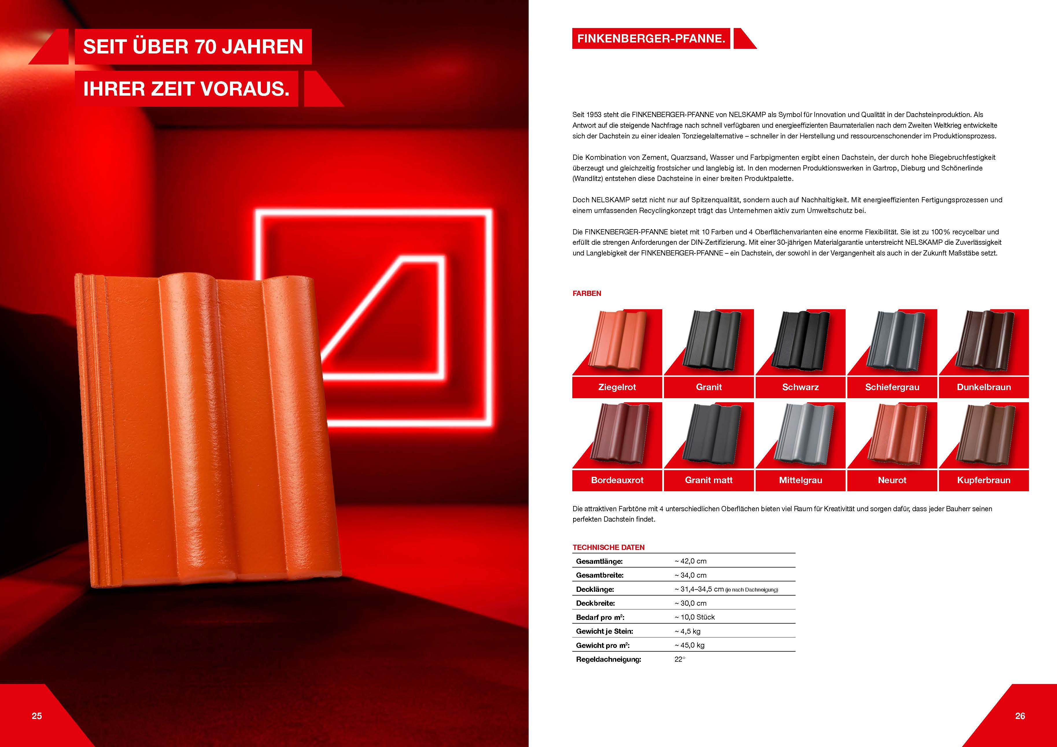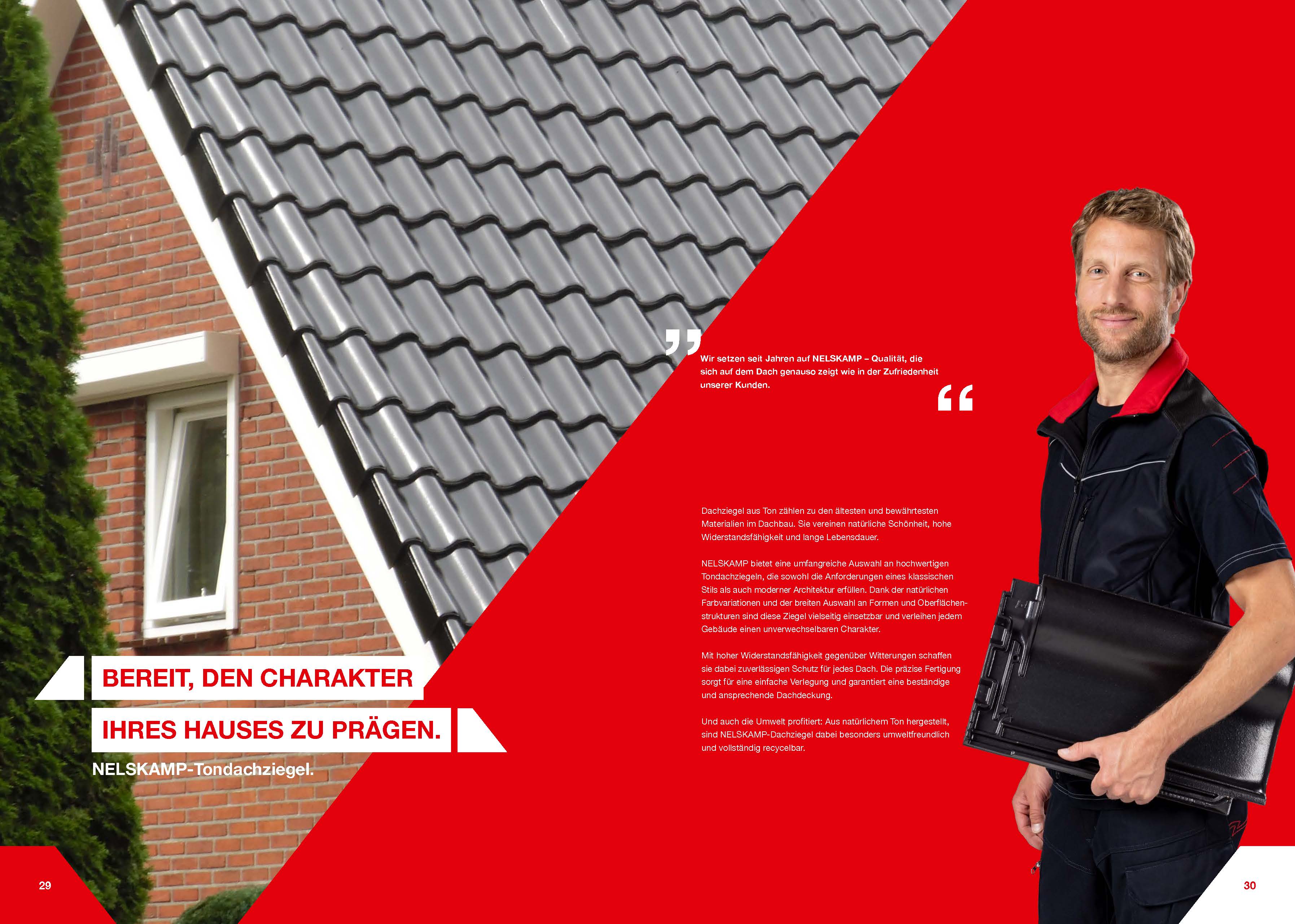 From the very beginning, all Nelskamp products have been guided by the principles of quality and reliability, tradition and innovation. Frost resistance and water impermeability are two fundamental quality requirements. Nelskamp generally offers a 30-year guarantee on all clay and concrete roof tiles.