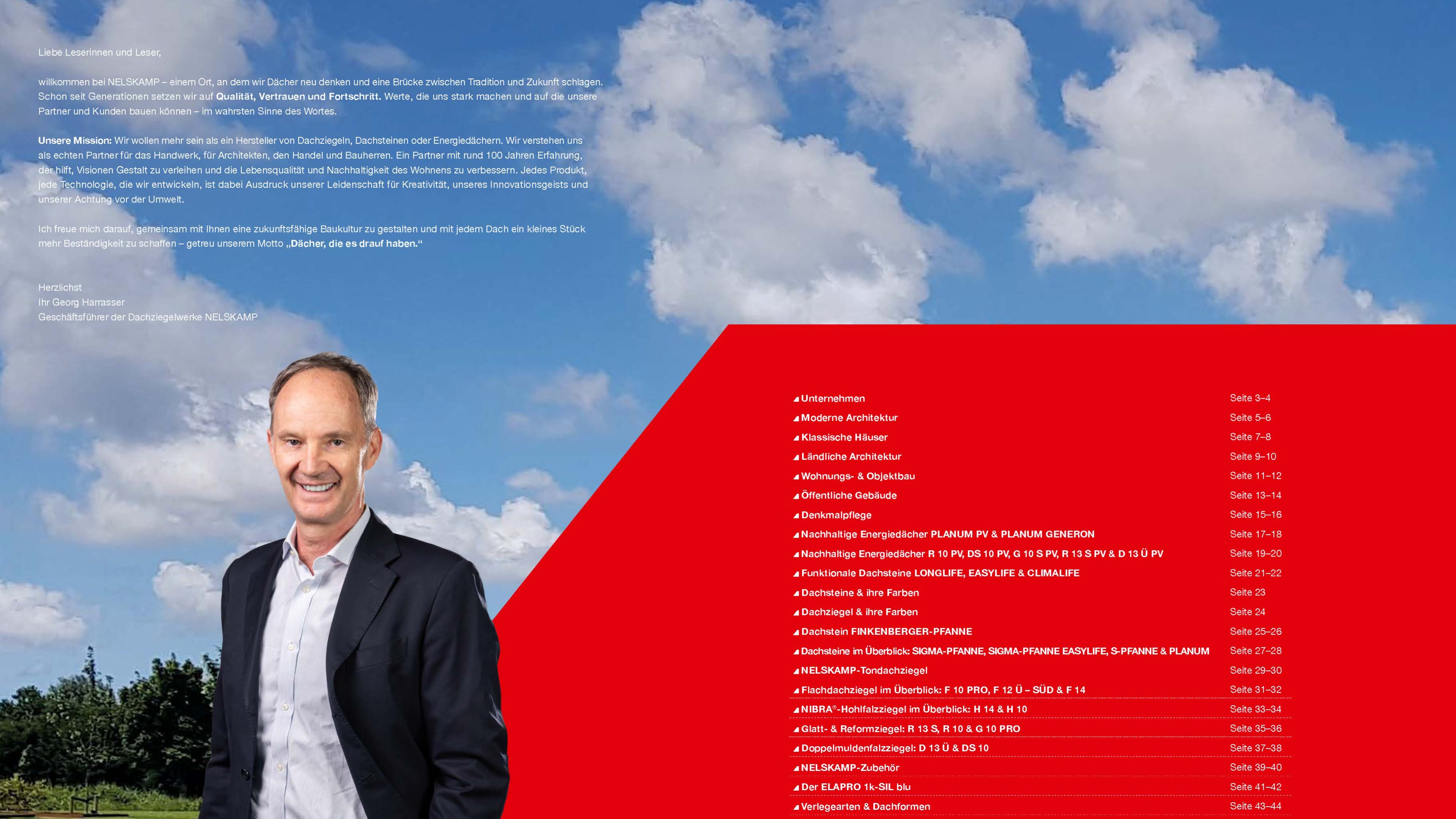 In 1926, the family-owned company from Schermbeck in North Rhine-Westphalia began producing roof tiles. Since then, in addition to a wide range of different clay and concrete, colors, and finishes, five production sites (Gartrop, Dieburg, Unsleben, Schönerlinde, and Groß-Ammensleben) have been added.
